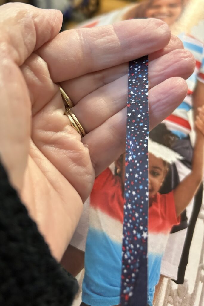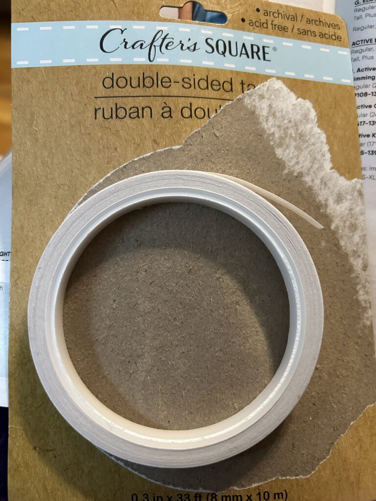 Enter double sided tape. I like this skinny stuff from Dollar Tree.