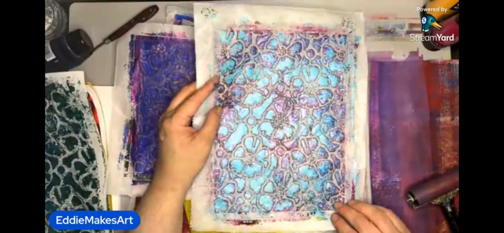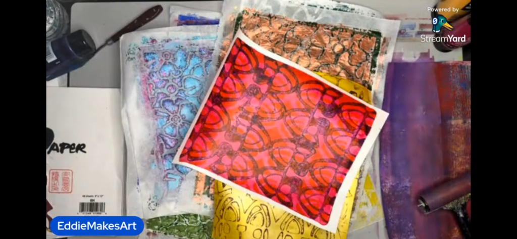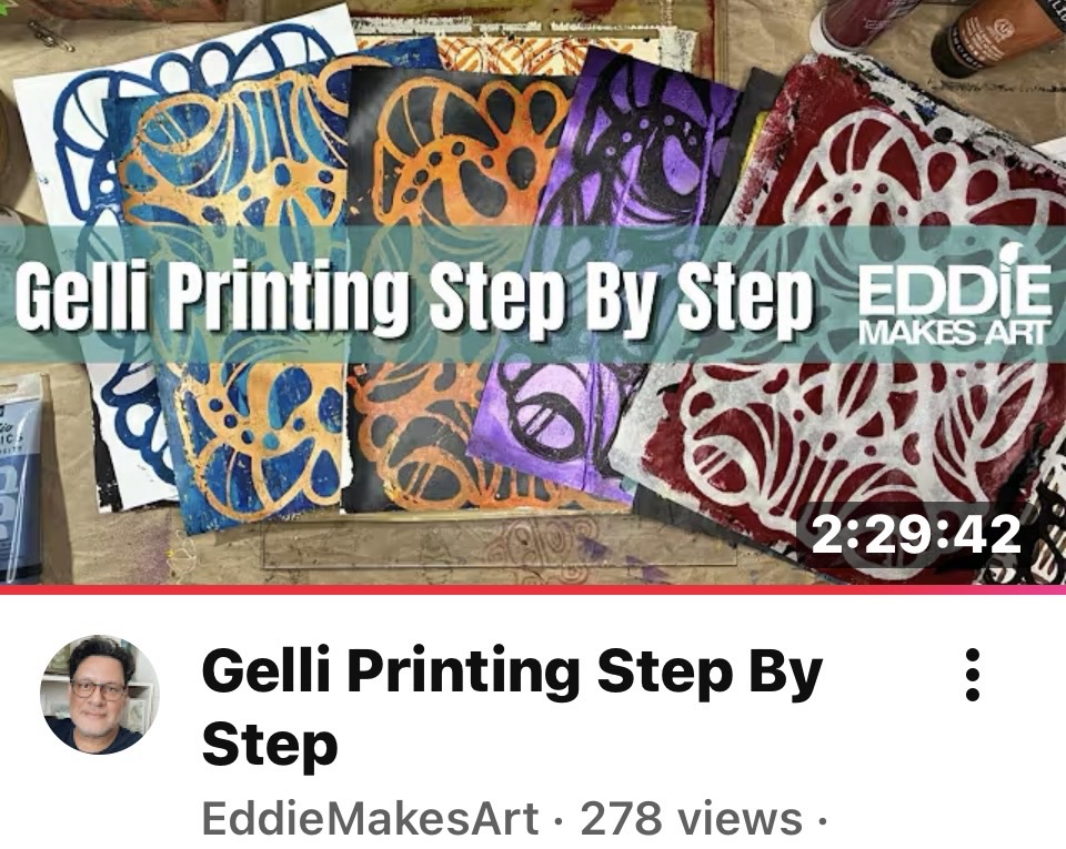 My friend, Eduardo Jr. Reyes, just finished a live stream about gel printing basics. You can find him on You Tube at Eddie Makes Art.