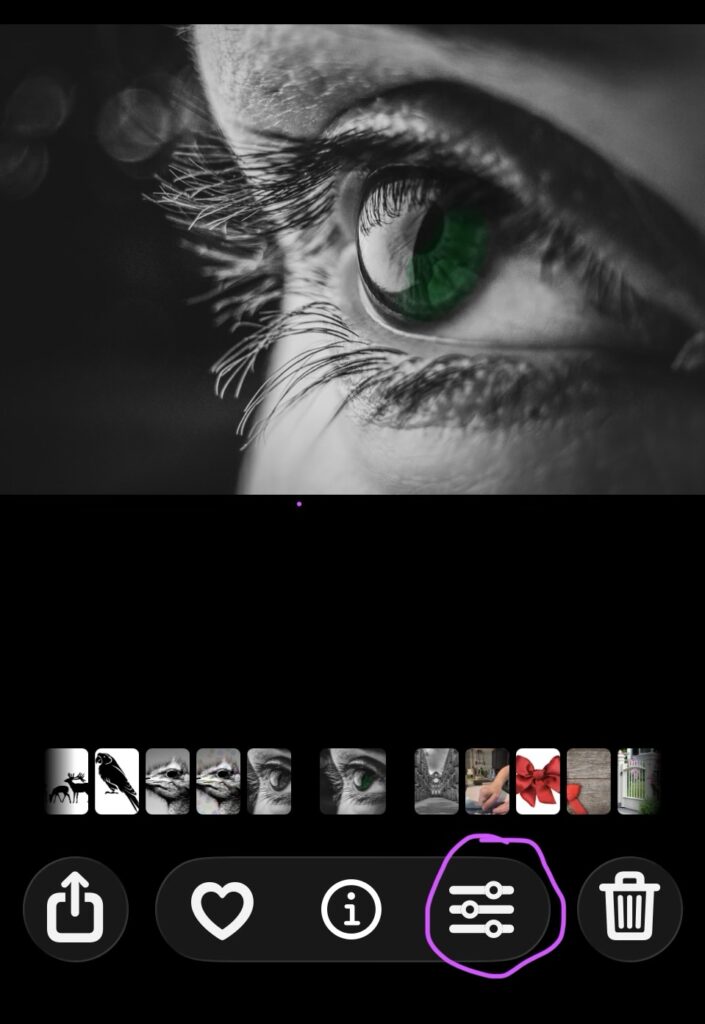 During a recent upgrade, all the photo editing icons were combined into one slider. It looks like this: