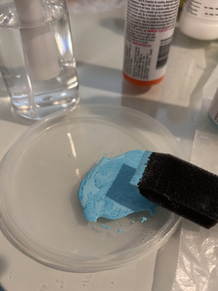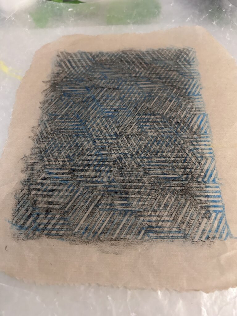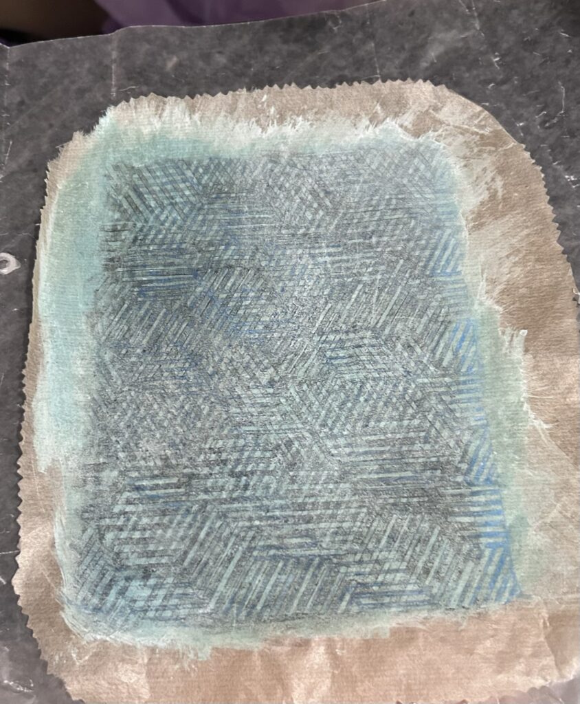 I used a sponge brush and a misting bottle to add water. The paper is cicada paper, a brown rice paper. (My joke is always “Is brown rice paper better for you than white rice paper?”)