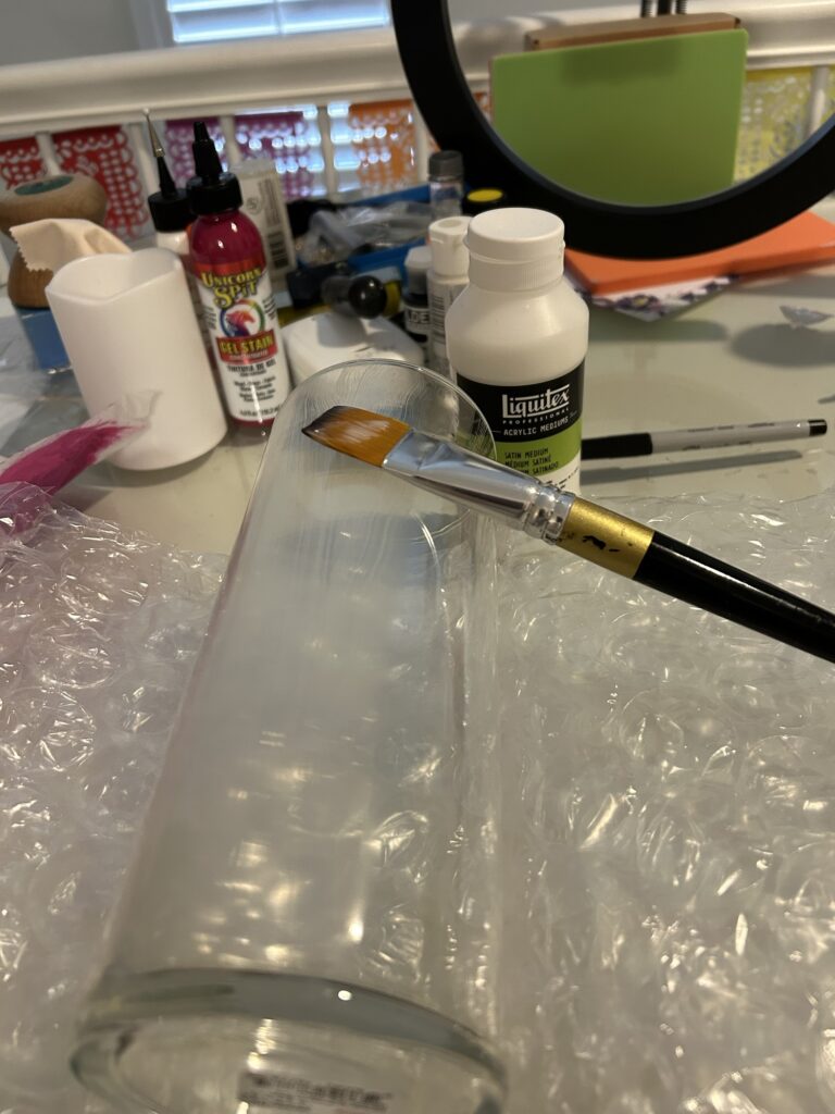 Next, I’ll finish up by attaching the tissue to the glass with clear gel medium. I am pretty pumped about this!