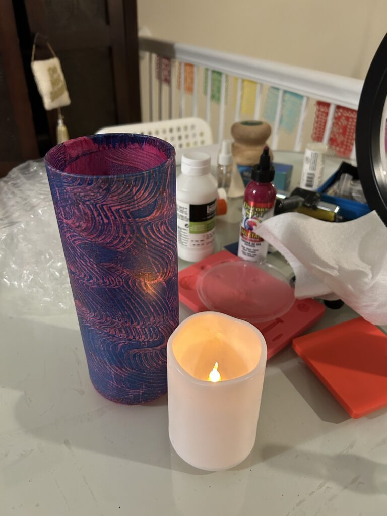 I just put the last coat of gel medium on the bottom of my lantern/candle!