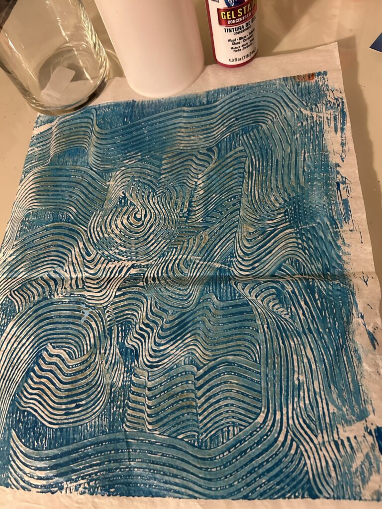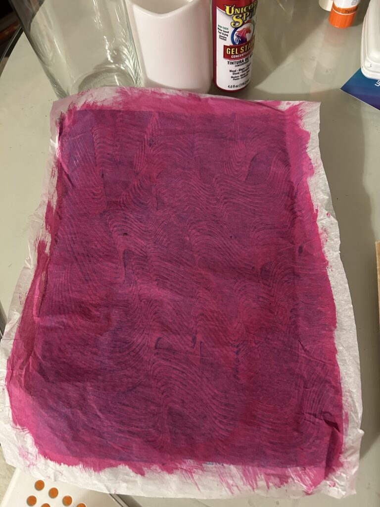 I used a sponge brush and a misting bottle to add water. The paper is cicada paper, a brown rice paper. (My joke is always “Is brown rice paper better for you than white rice paper?”)